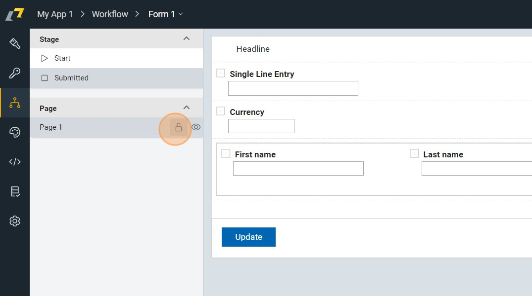In HCL Domino Leap you can lock form objects or whole pages making them read only. This can be done to prevent users from editing certain parts of the form or whole form pages. This can be useful in situations where you want to prevent users from editing certain parts in certain stages of the form.