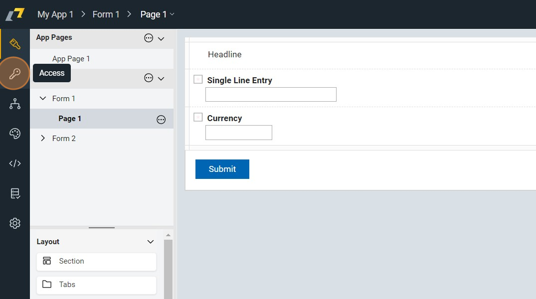 - Access the design environment and navigate to the Access tab.