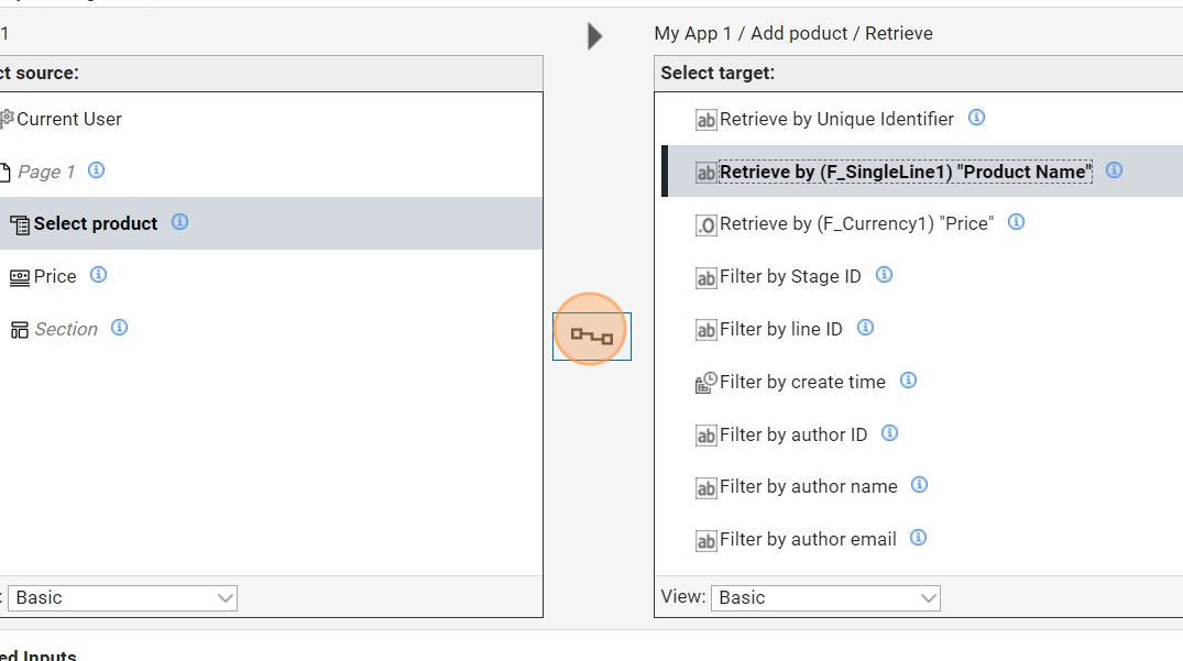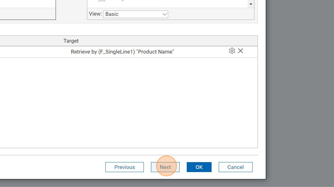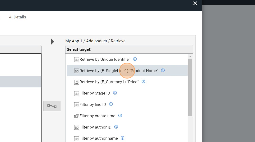 10. Click "Retrieve by (F_SingleLine1) "Product Name""