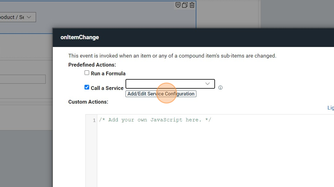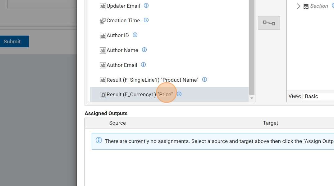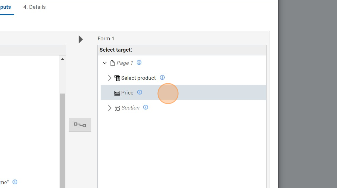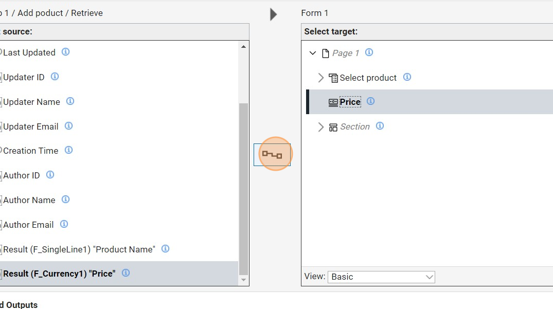13. To map output of service call to other form data click "Result (F_Currency1) "Price""