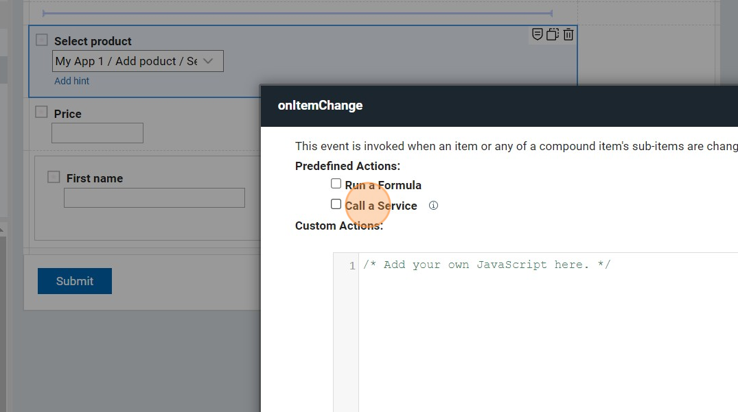 You can call services from the same form of from another form (in the same app or from another app). If you want to see service called form another form, feel free to navigate to the next chapter called Multiform applications.