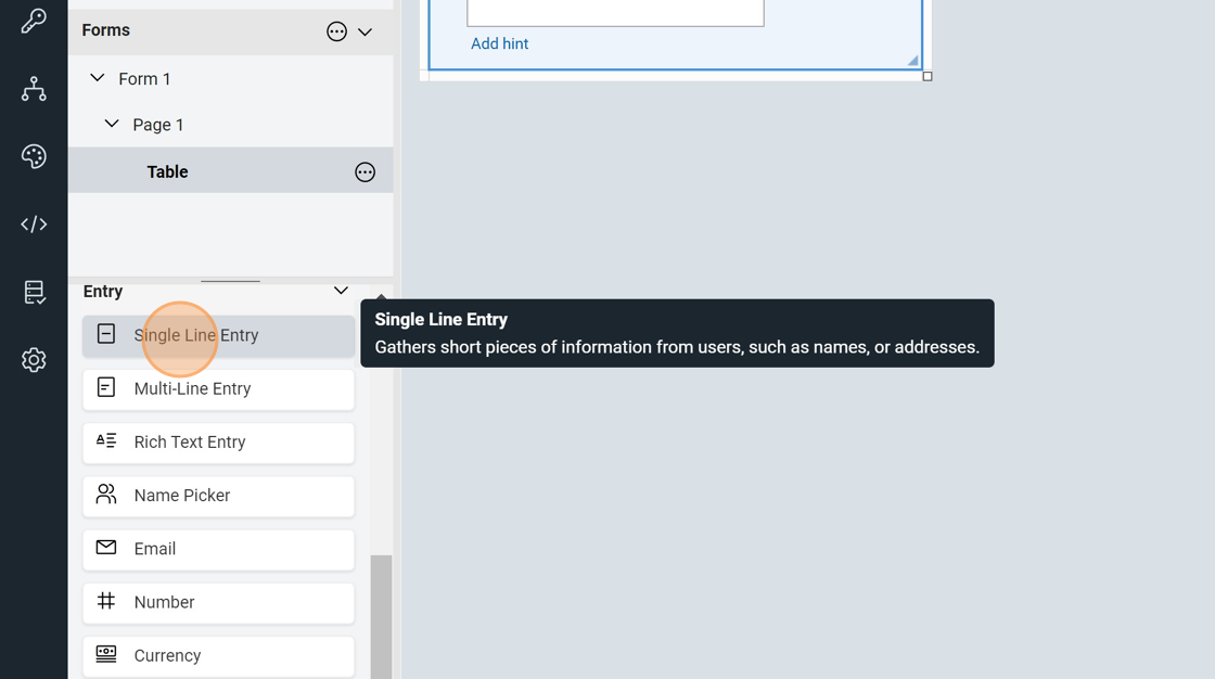 11. Double-click "Single Line Entry"